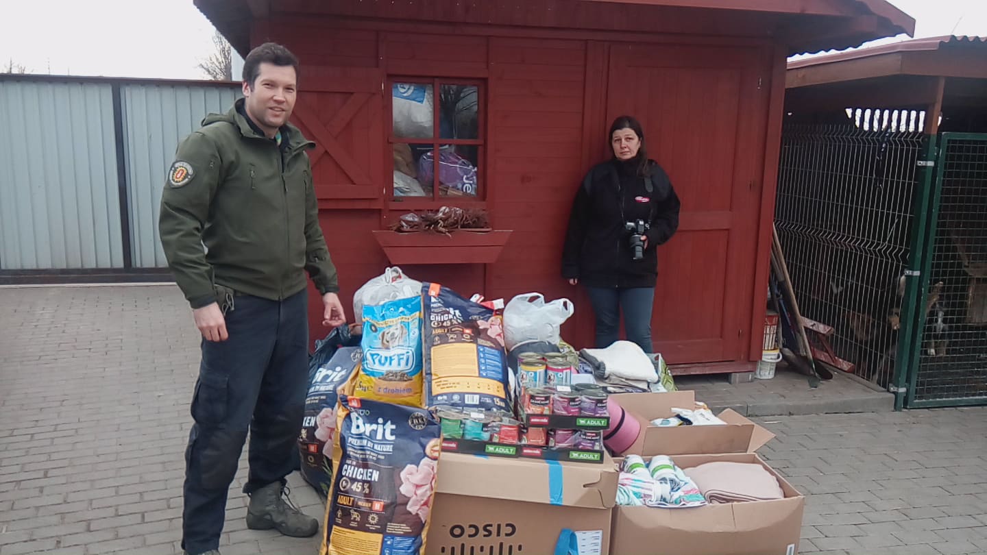 Związkowcy z ZT NSZZ FSG w Modlinie przekazali karmę i koce dla bezdomnych psów
