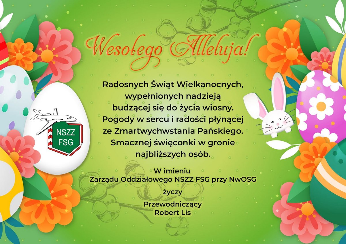 Życzenia Wielkanocne Przewodniczącego Zarządu Oddziałowego NSZZ FSG przy NwOSG