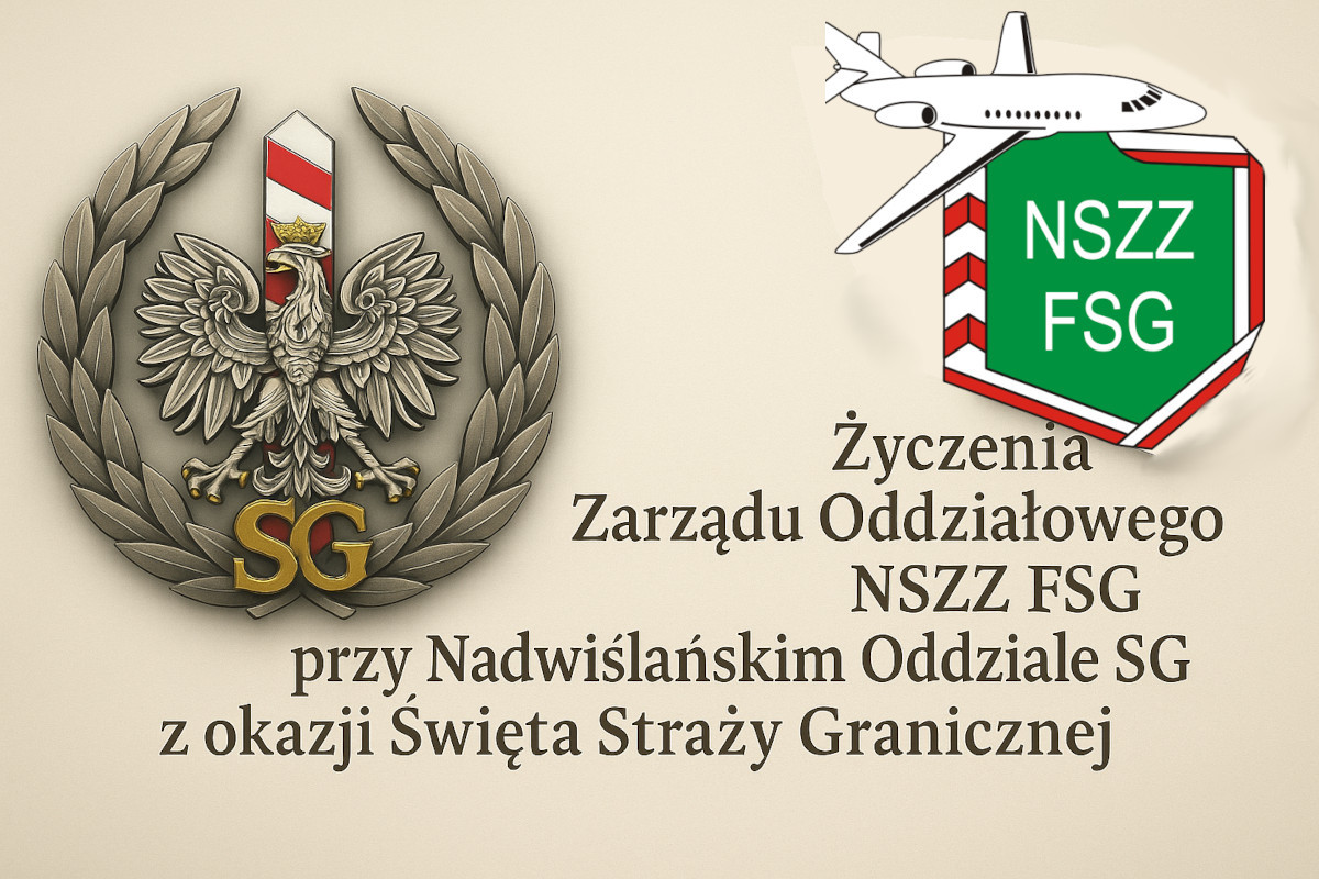 Zarząd Oddziałowy NSZZ Funkcjonariuszy Straży Granicznej przy Nadwiślańskim Oddziale Straży Granicznej składa wszystkim Funkcjonariuszkom, Funkcjonariuszom, Pracownikom cywilnym, Emerytom i Rencistom serdeczne życzenia zdrowia, pomyślności i satysfakcji z pełnionej pracy oraz służby.